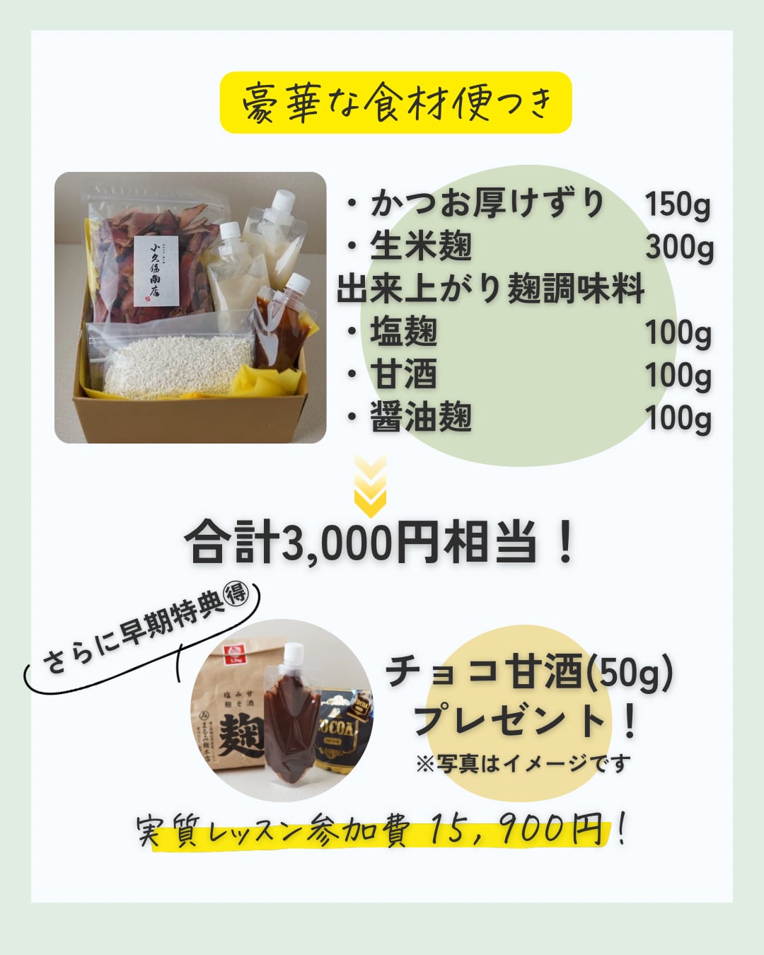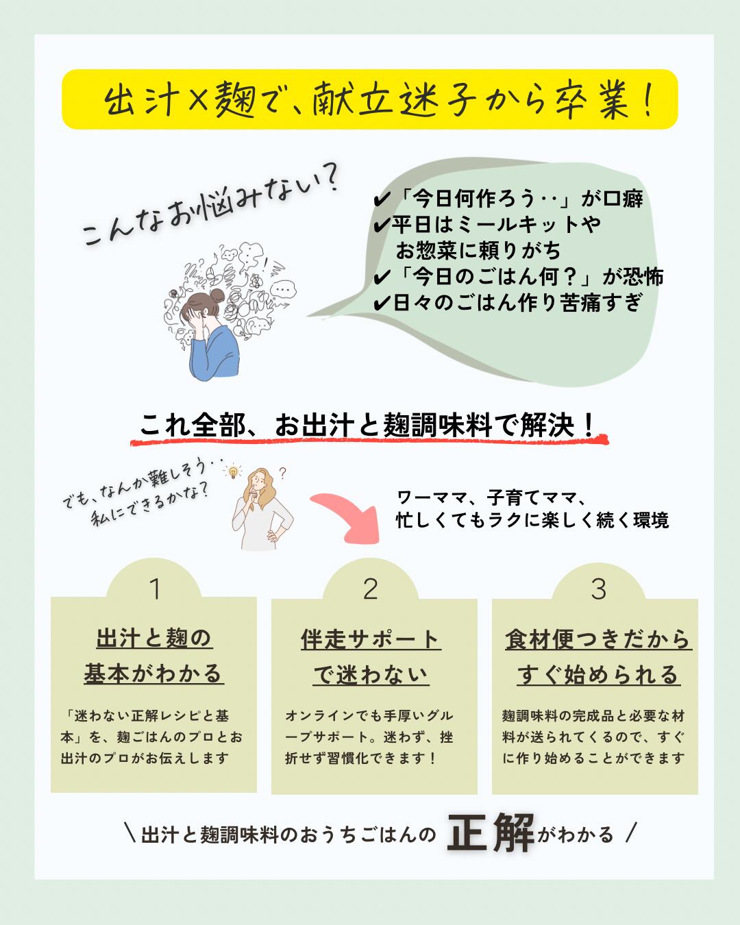 ✔ 食材便つき(出汁・麹調味料セット)